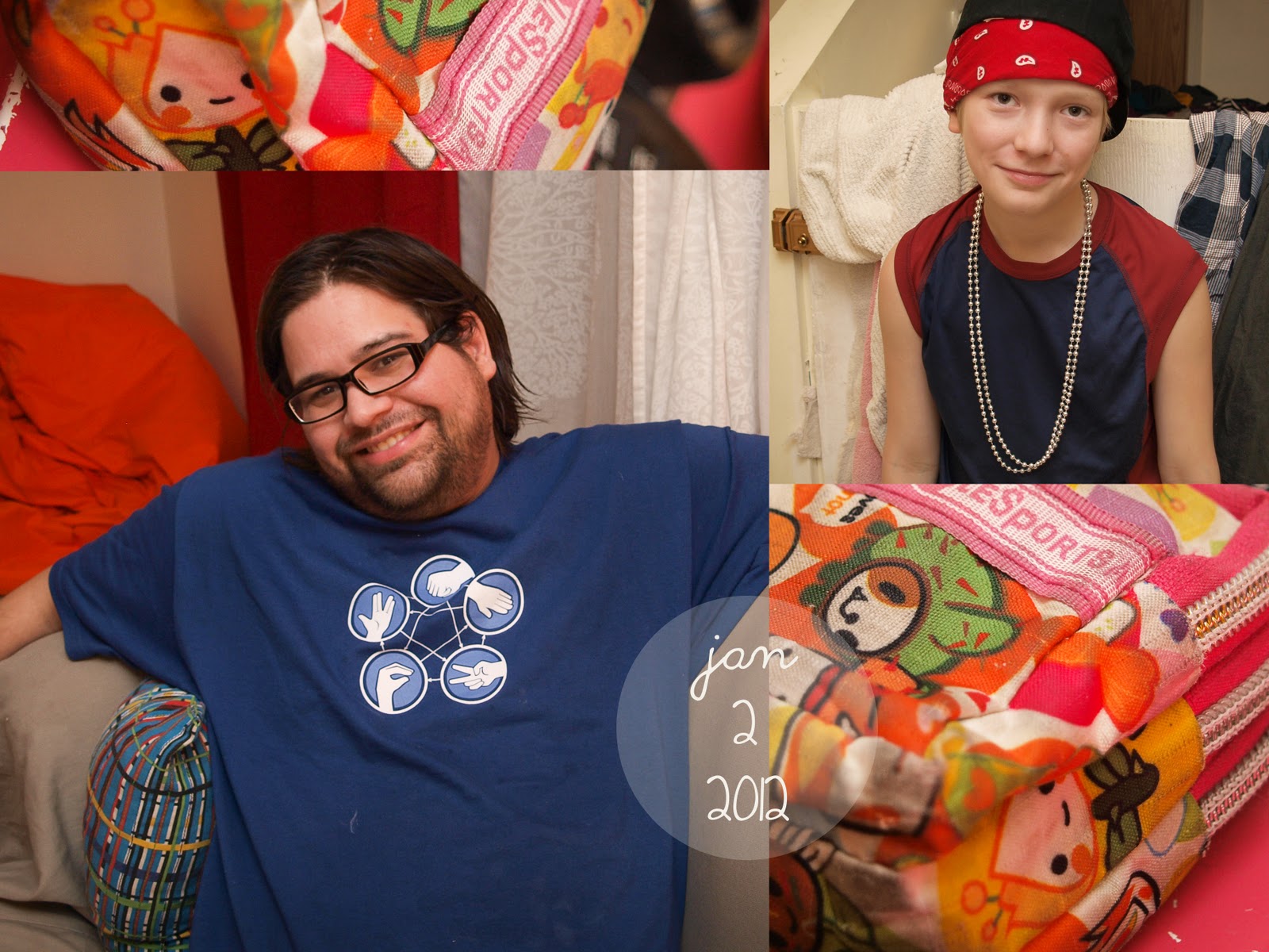 dove celebrated his 34th birthday a few days ago, and scored a "rock, paper scissors, lizard, spock" shirt from yours truly. mustard man still wearing his "bling", but a few have been liberated by opalina-ballerina.